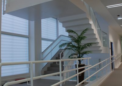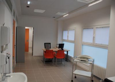 Las premisas de proyecto contemplaron una distribución funcional y rigor en la modulación tanto de las plantas como de los alzados en aras de una construcción sencilla y que permita una futura redistribución de las consultas. Del mismo modo, se plantea una distribución clara, con circulaciones sencillas y división público/privado, que facilita el entendimiento del centro por parte de los usuarios. El espacio más significativo se corresponde con la zona de la entrada, donde la escalera sin apoyos adquiere protagonismo. En las fachadas se ha buscado adaptarse al lenguaje del edificio para crear un conjunto equilibrado.