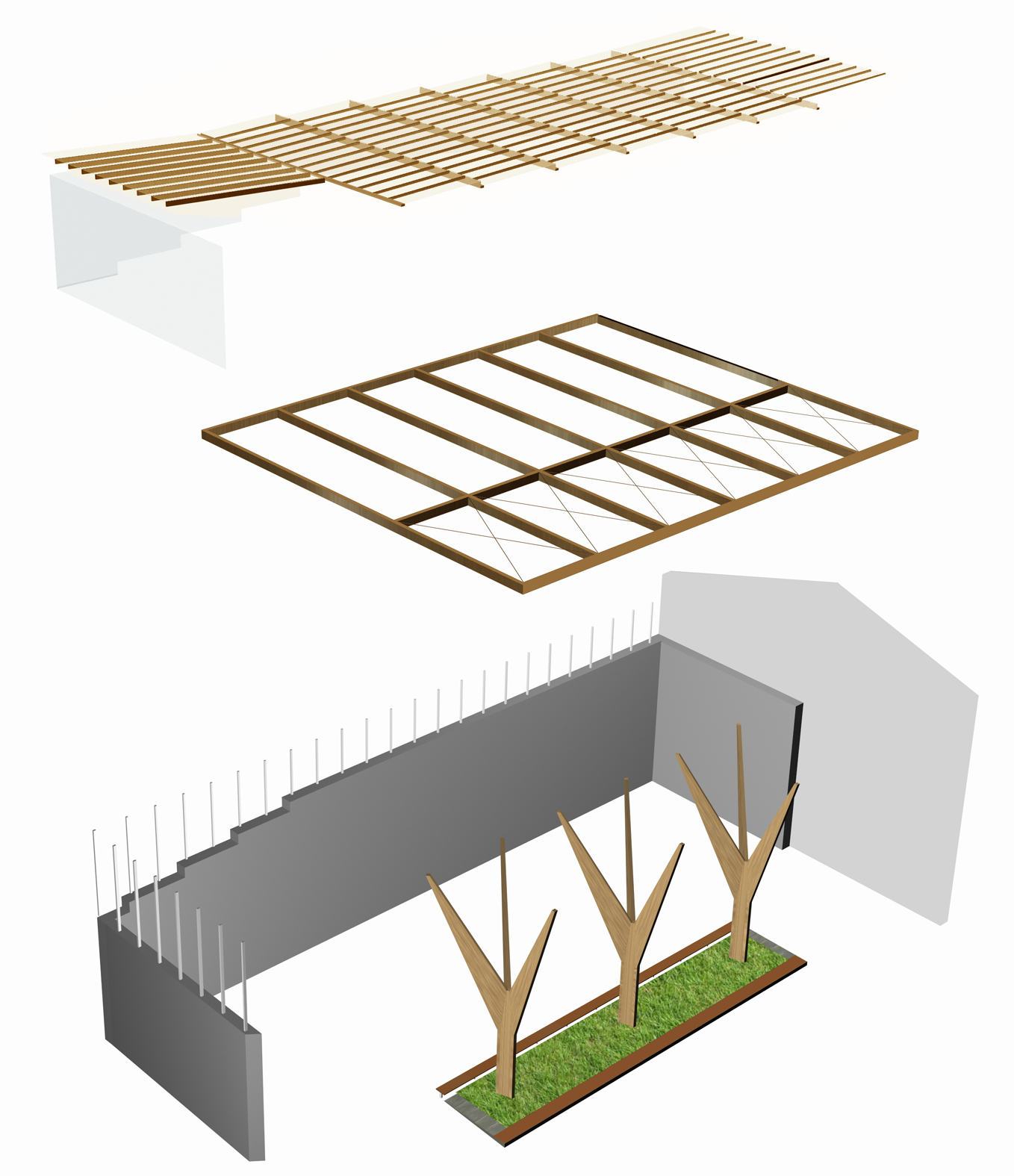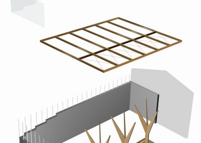 La cubrición se constituirá por un entramado principal de vigas y un entramado secundario de viguetas, en ambos casos de madera laminada.