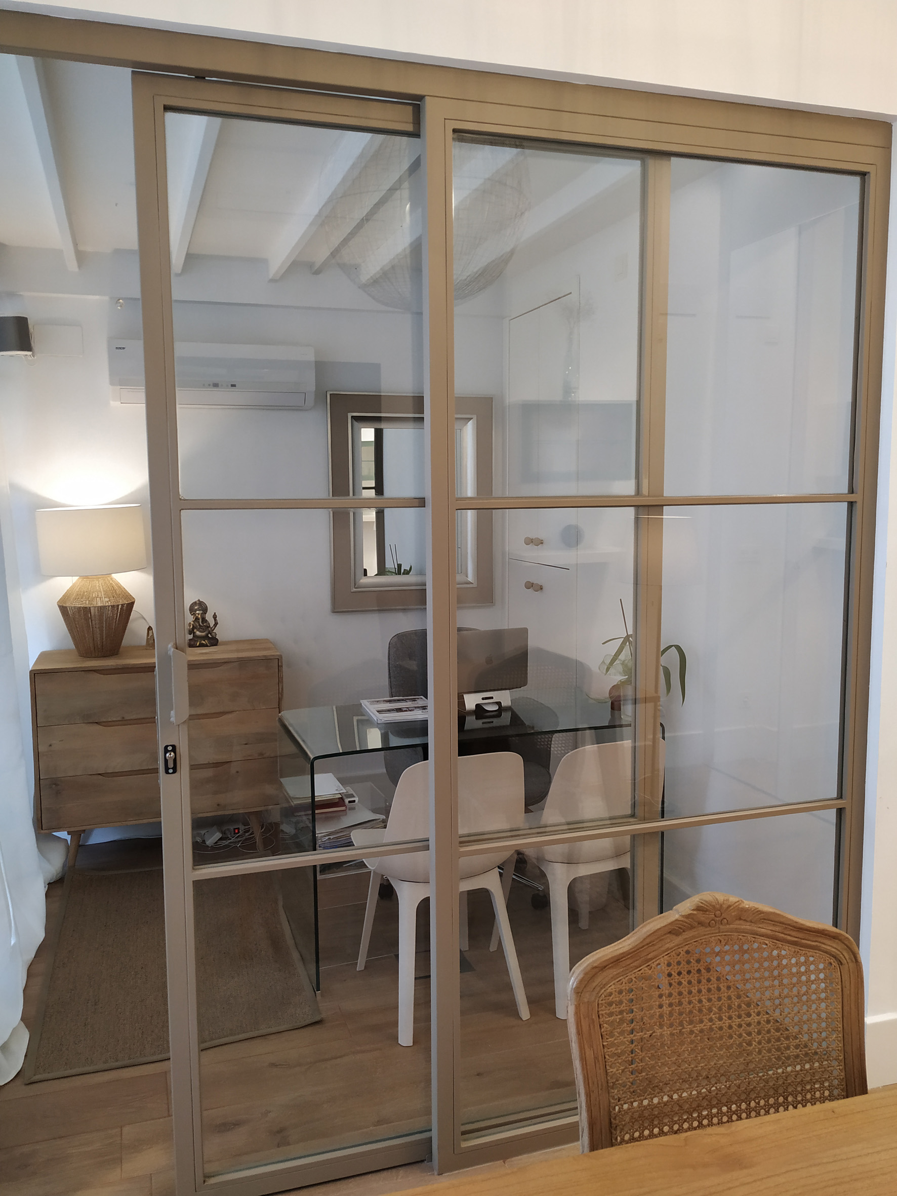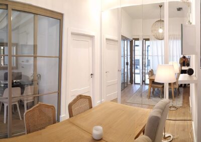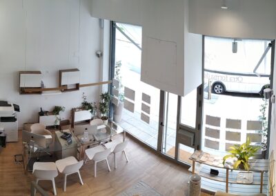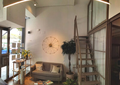 El local original disponía de una altura libre de 4,5 m, lo que ha dado lugar a un proyecto con diferentes alturas que jerarquizan cada uno de los espacios: